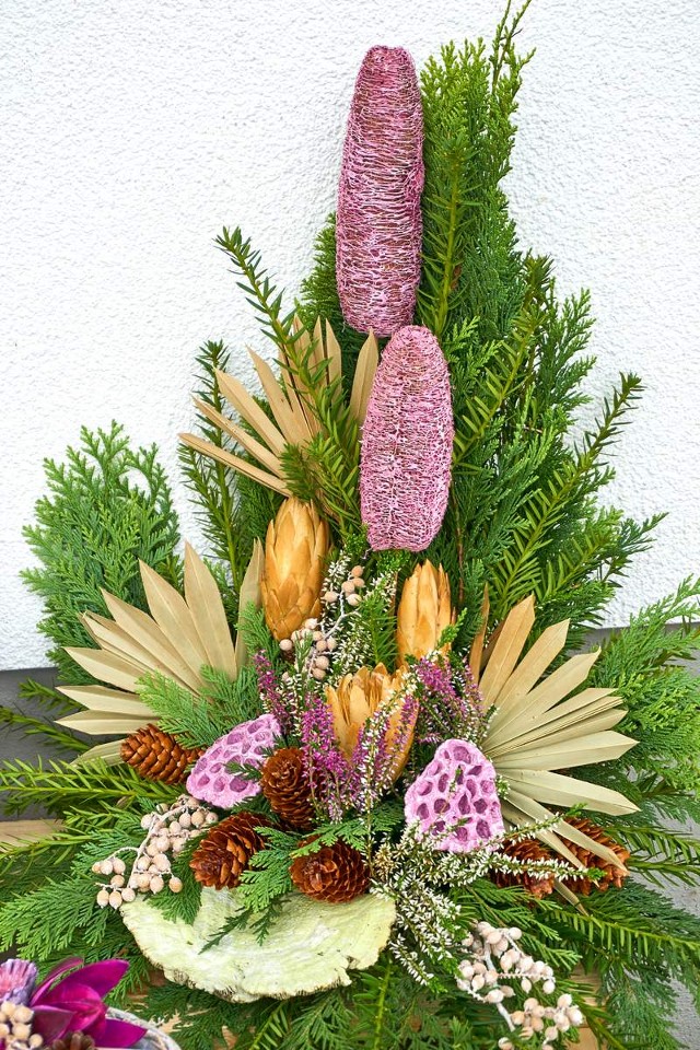 arbiges Gesteck aus Naturmaterialien Ton in Ton.